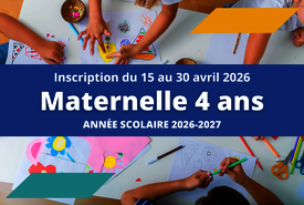 Maternelle 4 ans 2026-2027 : inscription du 15 au 30 avril 2026